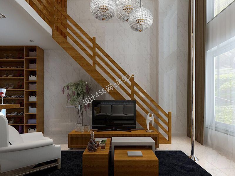 益田拉德芳斯62平loft美式风格客厅楼梯效果图