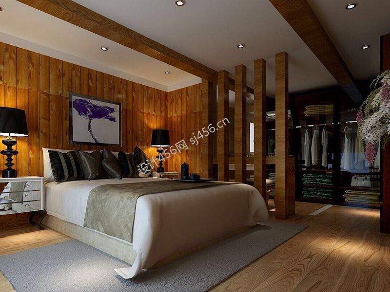 益田拉德芳斯62平loft美式风格卧室木质背景墙设计