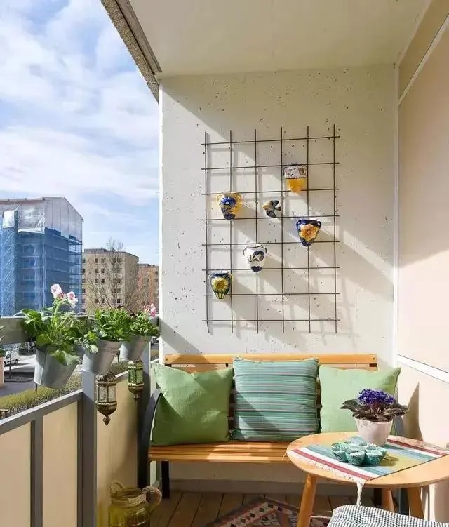 小阳台在装修的时候选择好颜色很重要,因为颜色对于空间的大小会有一定的视觉影响作用,在装修小阳台的时候尽量选择浅色的色系作为墙面的颜色,因为浅色可以让光线变得明亮干净,从而显得敞亮大方。