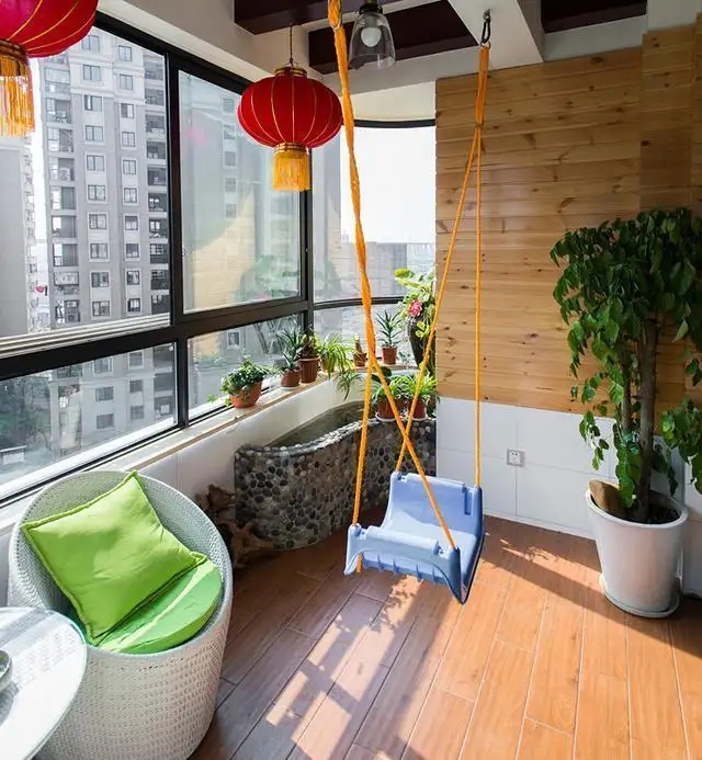 阳台通常都是在客厅或者卧室的旁边,如果是面积比较小的阳台想要装修的更加大气的话,小编建议不要在阳台和卧室/客厅做门或墙壁的连接,因为这样使得阳台和客厅/卧室变成了一体,空间上看上去更加开阔,还剩下了门和墙的费用,一举两得。