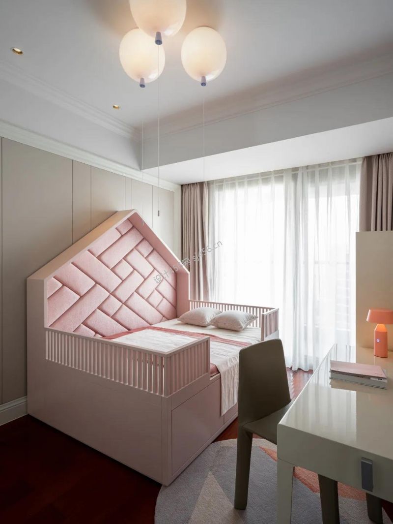 轻奢风格148平米三室两厅卧室窗帘装修效果图
