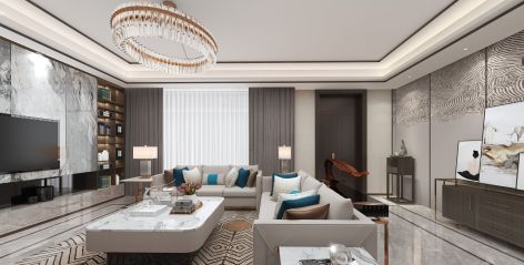 御翠湾轻奢风格276平米别墅装修案例风效果图