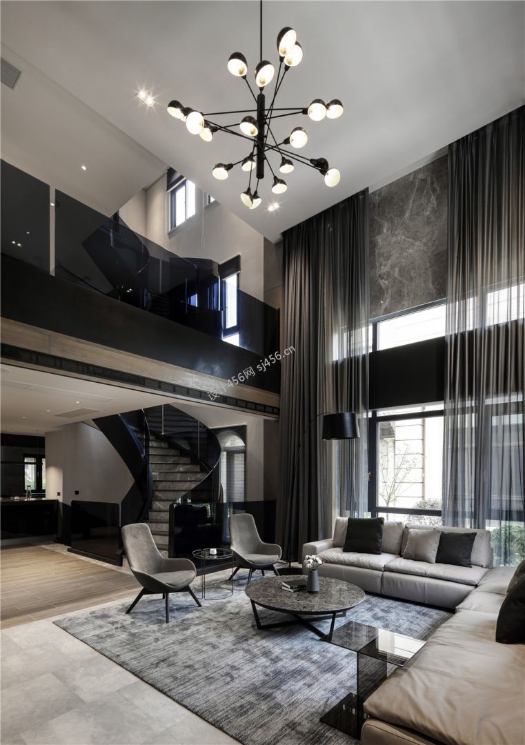 国信净月府时尚现代289平米别墅装修案例风效果图