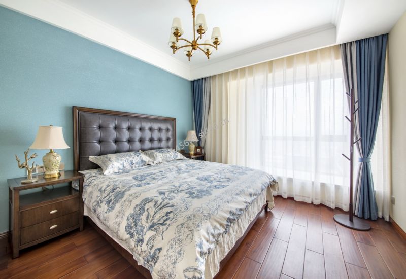 美式风格125平米三室两厅卧室窗帘家装效果图