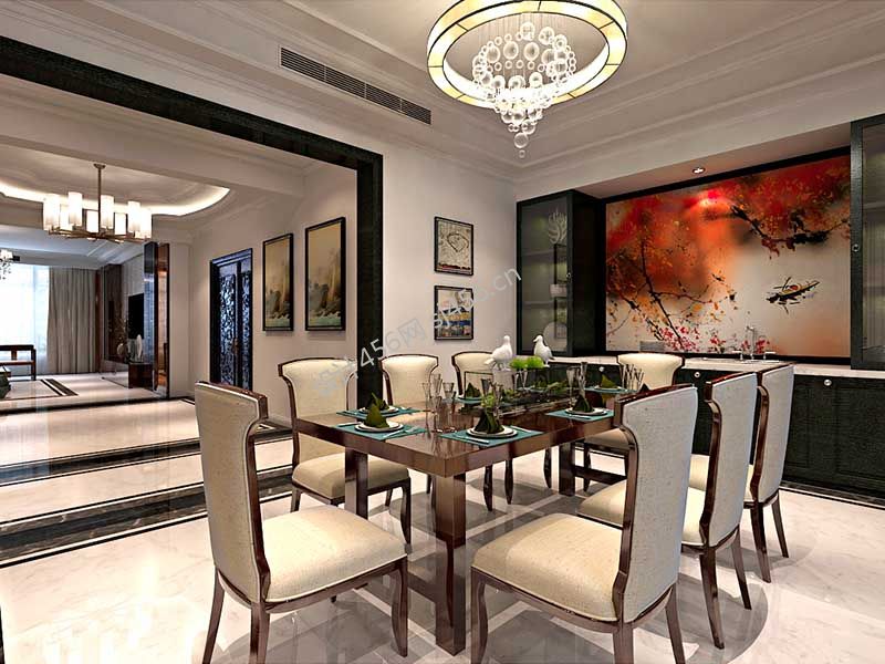 嘉惠第五园260平大平层新中式风格餐厅吊灯效果图