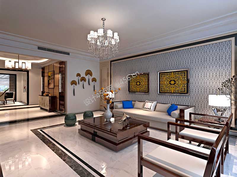 中信城拉菲庄园500平别墅新中式风格装修案例风效果图