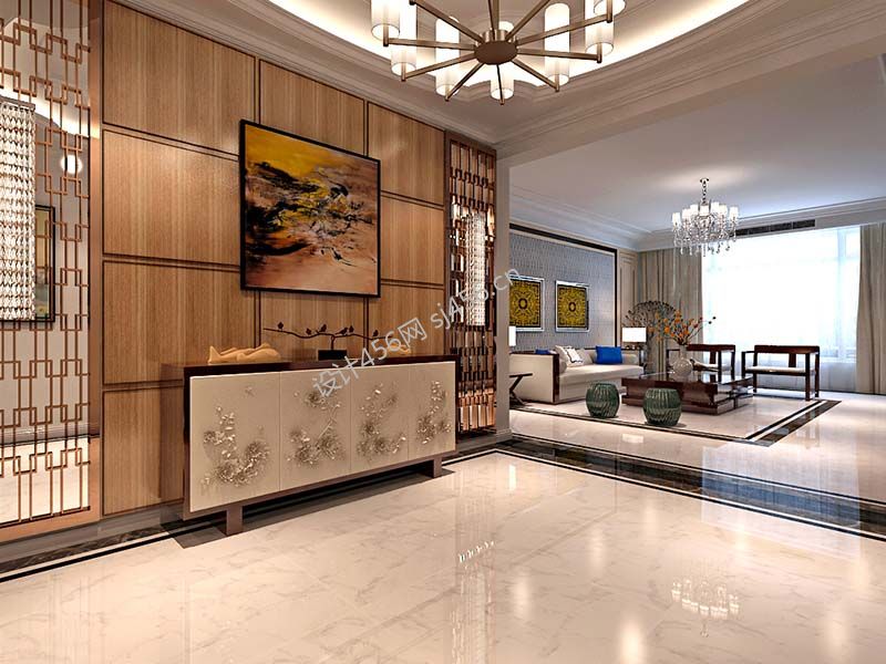嘉惠第五园260平大平层新中式风格玄关原木色系效果图片
