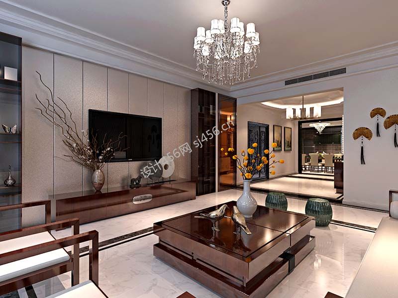 远创紫樾亭三居120平新中式风格装修案例风效果图