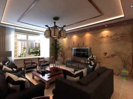 嘉惠第五园260平大平层新中式风格客厅电视背景墙装修图片