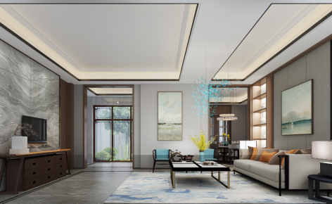 华润净月台新中式风格192平米别墅装修案例风效果图
