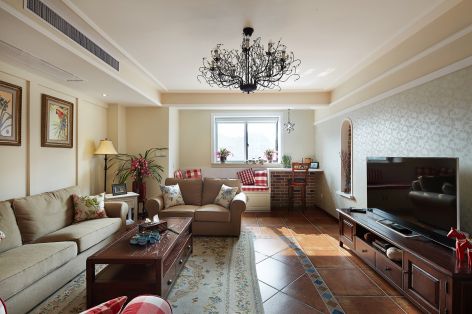 万达华府美式混搭142平米三室两厅装修案例风效果图