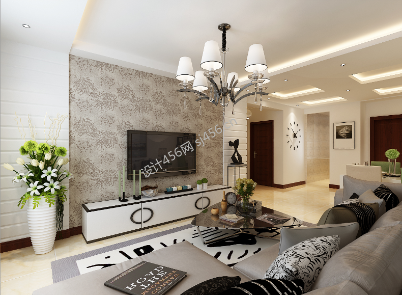 2020现代两室两厅效果图 客餐厅吊顶装修图