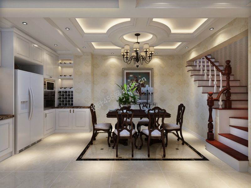 2020简美式餐厅装修效果图片 2020餐厅吊顶造型图片欣赏