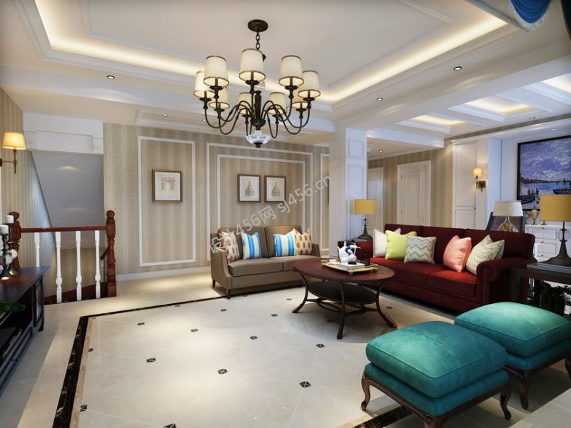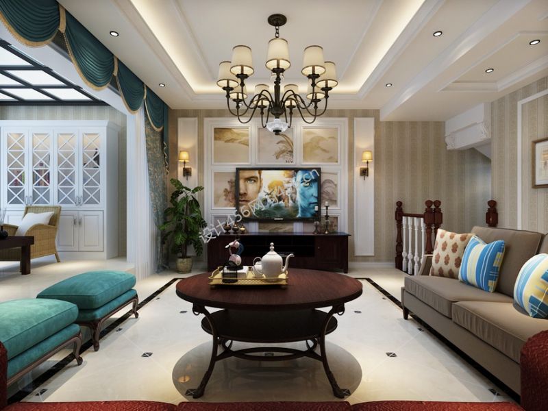 2020简美式别墅装修效果图 客厅整体装修效果图
