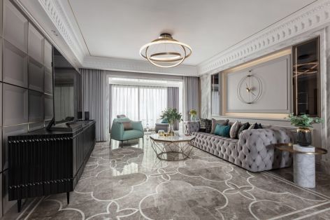 伟峰东域轻奢风格149平米三室两厅装修案例风效果图