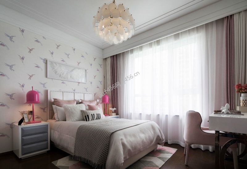 轻奢风格140平米三室两厅卧室吊灯装修效果图