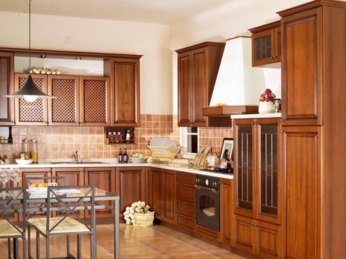 实木整体橱柜合用于9.2m以上的橱柜,假如是开放式的厨房,则至少需7.2m。实木整体橱柜比较适合偏爱纯木质地的中年消费者高端装修使用。实木制作的橱柜门板,具有回归天然、返璞归真的效果,风格多为古典型,其门框为实木,以樱桃木色、胡桃木色、橡木色为主,门芯为中密度板贴实木皮,这样可以保证明木的特殊视觉效果,而且边框与芯板组合又可以保证门板强度,且不开裂、不变形历久长新(日常维护仍旧需十分精心)。制作中一般在实木表面做凹凸造型,外喷漆。因此实木类门板保持了原木色且造型柔美,尤其是一些意大利入口高端实木橱柜,花角边的处理以及漆面光彩工艺都达到世界提高前辈水平。目前海内厂家实木橱柜工艺水平与国.际尚有较大间隔,国产实木门板目前因为制作工艺达不到,存在着易变形、易干裂、表面粗拙等题目,市场上甚至有一种仿实木,是中密度制作的,外加油漆,购买的时候要留意。入口实木橱柜价格昂贵,且形状变化较少,入口的品牌有大多都是欧美的。