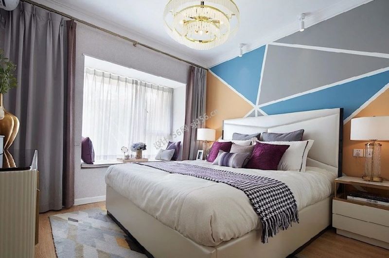 轻奢风格135平米3居室卧室背景墙装修效果图