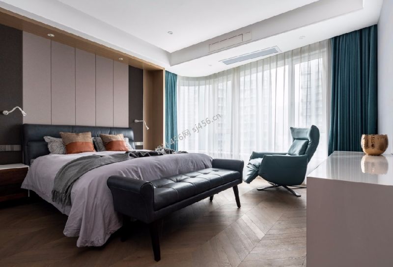 现代风格116平米3居室卧室背景墙装修效果图
