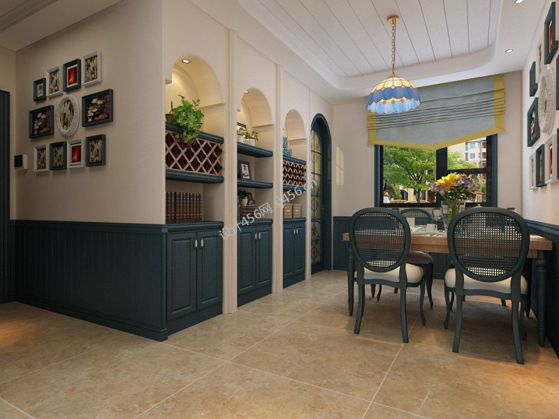 105平米三居地中海风格餐厅嵌入式酒柜效果图