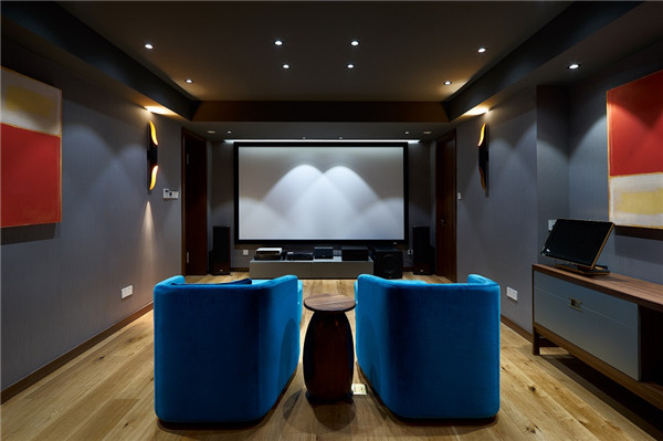 影音室既保留了中式韵味,又增添了现代影音室的时尚感,大胆使用色彩,使我们能在这样得空间里面尽量释放自己的快乐。
