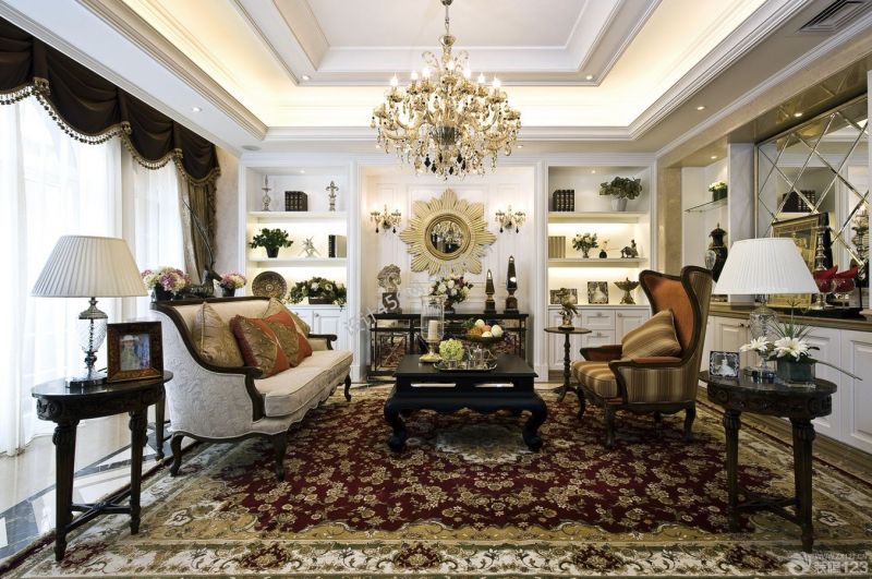 豪华欧式客厅水晶吊灯装修效果图