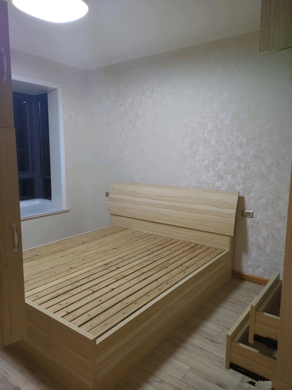这个是主卧,主卧真的好小啊!哎,没钱就买小的房子了。总比租房强吧?