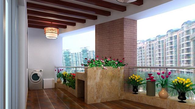 大都市的阳台这样设计显得非常精致有档次感,阳台上采用浅咖色的大理石瓷砖装饰,把花坛装饰的更加时尚有层次感,能够摆放更多的花花草草,让阳台显得非常清新有情调。阳台屋顶采用实木的扣板装饰,简单的装饰,使得阳台显得更加时尚有立体感。