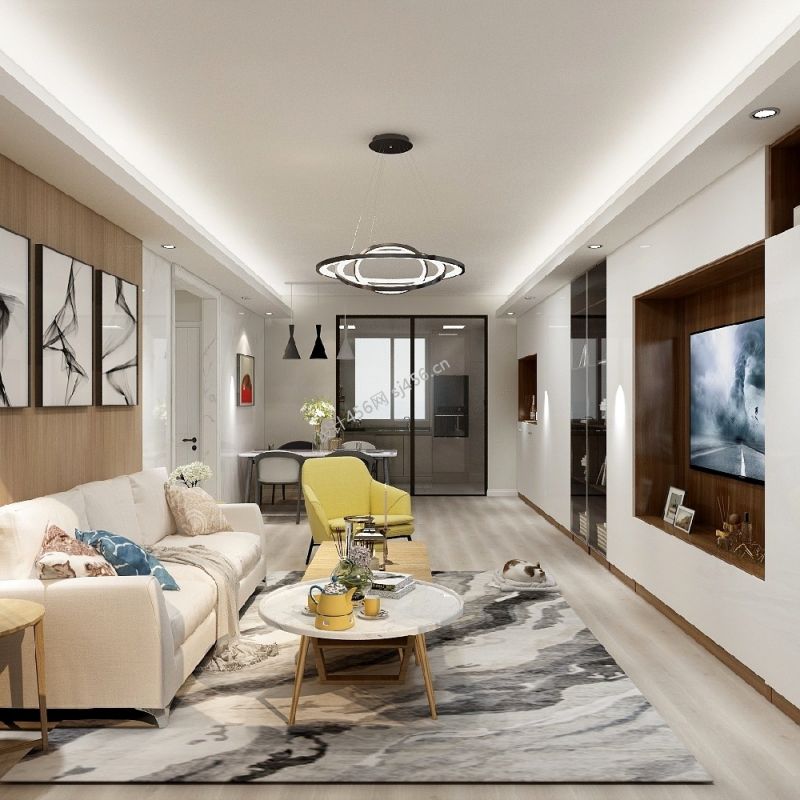 103平米三居现代简约客厅吊顶家装效果图