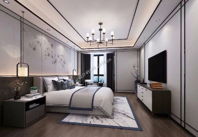 115平米中式卧室三居装修实景图