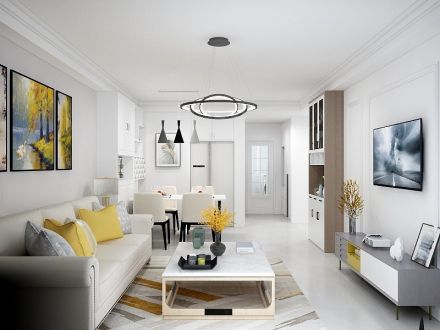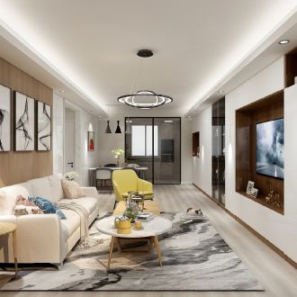 绿地468公馆二期100平米现代二居室装修案例风效果图