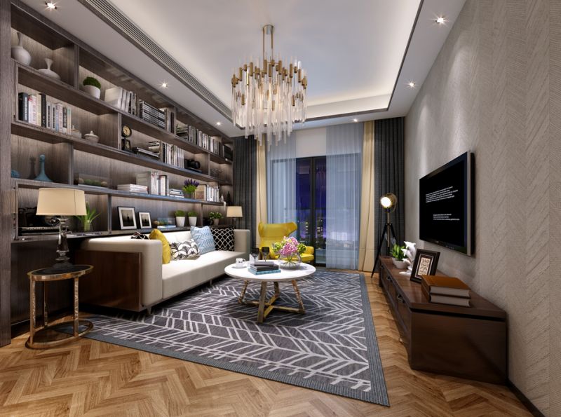 天慧国际外滩美式风格105平米三室两厅装修案例