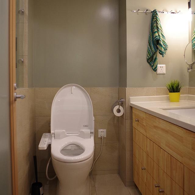 卫生间的面积不大,这样装修显得非常精致紧凑,能够将室内的空间非常好的使用起来,日常使用非常便利,丝毫没有小户型的压抑感。浅色的实木浴室柜非常精致,采用入墙式的安装方式,周围还采用浅咖色的瓷砖装饰,既美观又能起到很好的防潮效果,日常打理起来也更加便利。