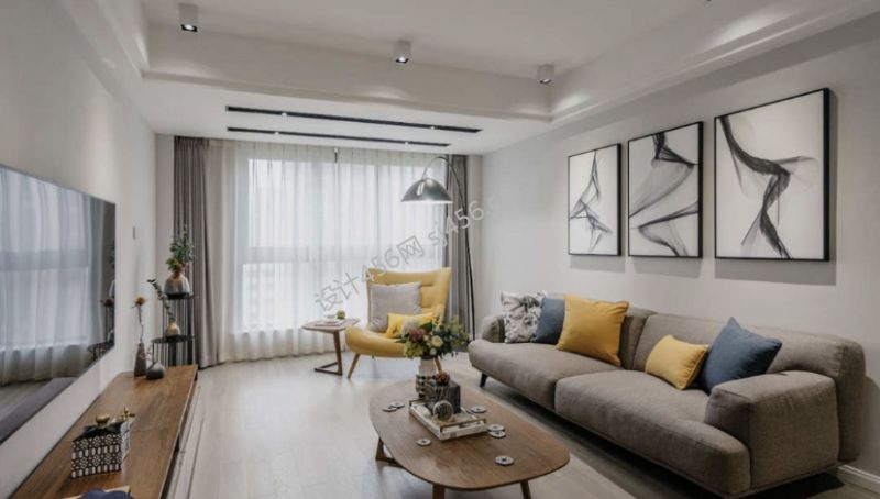 世龙广场135平三居室北欧极简风格装修案例风效果图