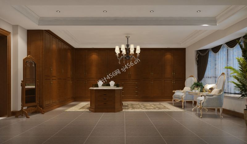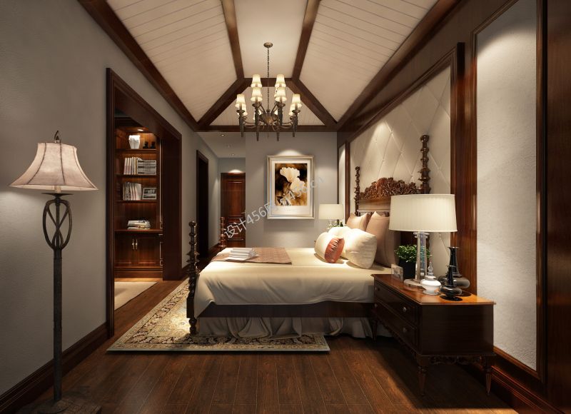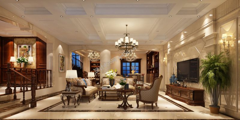 世豪金河谷美式风格320平别墅设计案例风效果图