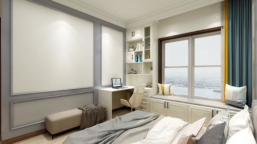 飘窗不仅是观景台,还可为卧室提供强大的收纳空间。