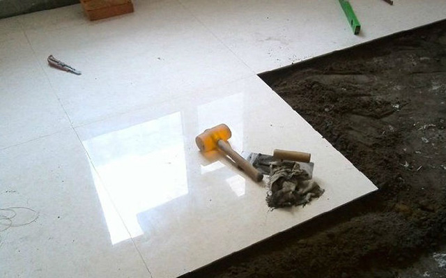 注意:在敲击瓷砖的过程中可能会有多余的水泥砂浆从缝隙中溢出,一定要及时用湿抹布擦掉,避免水泥凝结之后难以去除。