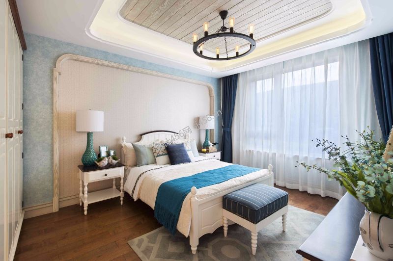 地中海风格135平米三室两厅卧室吊灯装修效果图大全