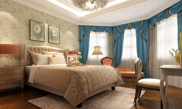 老人房的窗帘可选用提花布、织锦布等,厚重、素雅的质地和图案,以及华丽的编织手法,也能体现出老人成熟、稳重的智者风范。此外,厚重的窗帘带来稳定的睡眠环境,对于老人的身体大有好处。