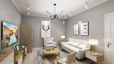 汉嘉国际社区北欧极简三居102平米装修案例风效果图