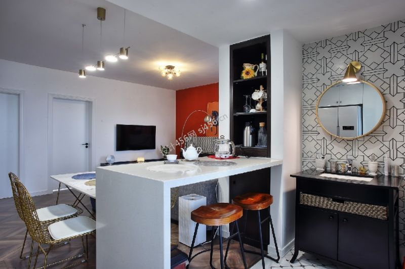 龙樾湾90平二居室混搭风格装修案例风效果图