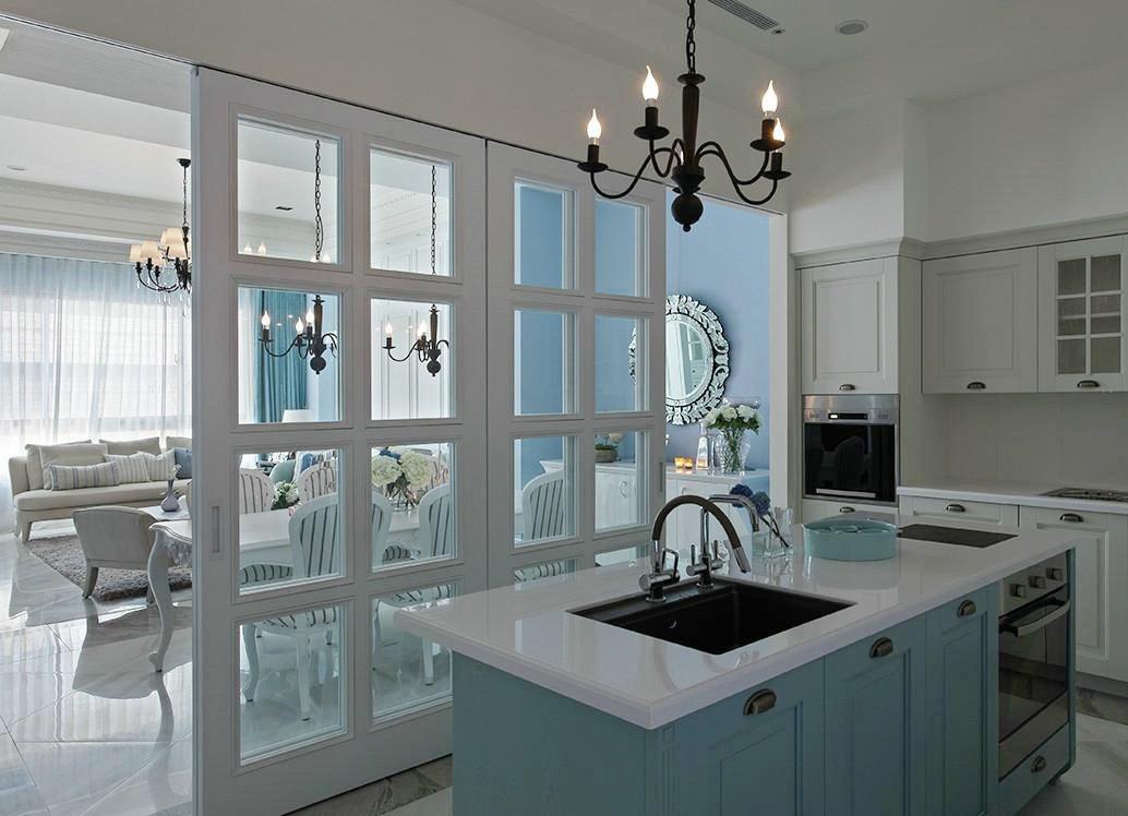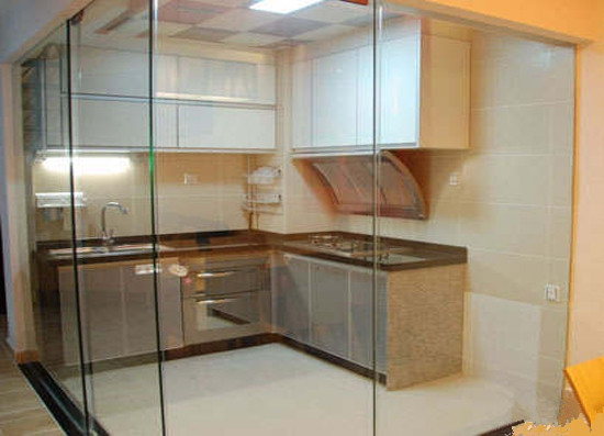 玻璃是透明的,厨房用玻璃门的话,会显得更通透宽敞一些,而且厨房的采光也会更好,显得客厅的空间更大一些。玻璃门是比较节省面积的,而且也很有颜值,能够有效的隔绝厨房里的油烟。
