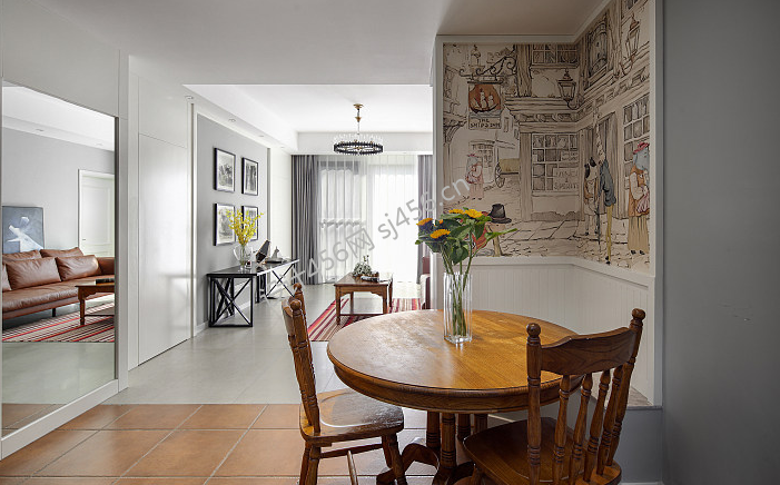 国奥村136平三居室混搭风格装修案例风效果图