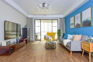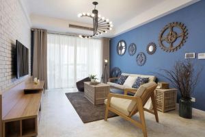 生活需要情调,装修巧妙融入一些时尚元素,为家人营造出一种温馨浪漫的生活环境。沙发背景墙采用深蓝色的格调,还装饰了一些精致的艺术品,从而使得客厅看上去更加清爽又浪漫,让家人生活更加开心。效果图