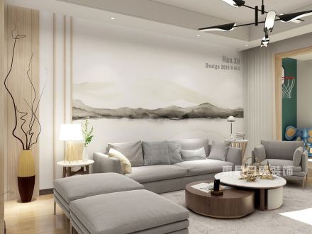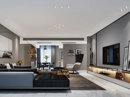 华润金悦湾现代简约182平四居室装修案例风效果图