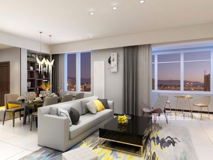 朗诗南门绿郡轻奢136平三居室装修案例风效果图