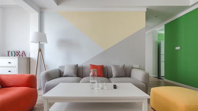 [成都精绘装饰]128㎡大三居,墙壁几何色彩,清新亮丽