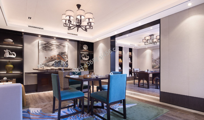 碧桂园海昌天澜中式138平三居室装修案例风效果图