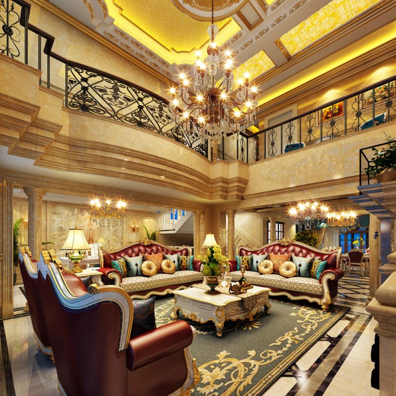 蔚蓝卡地亚黑钻欧式风格360平米别墅装修案例