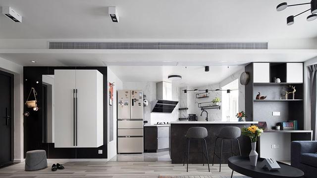 06-1176平米的小户型采用简约风装修方案,搭配一些精美的软装,从而让室内显得更加敞亮大气,既美观又能节省不少的费用。室内以黑白双色相搭配,加上一些精心挑选的软装,从而让新房简单而不简约,有一种极简的美感。